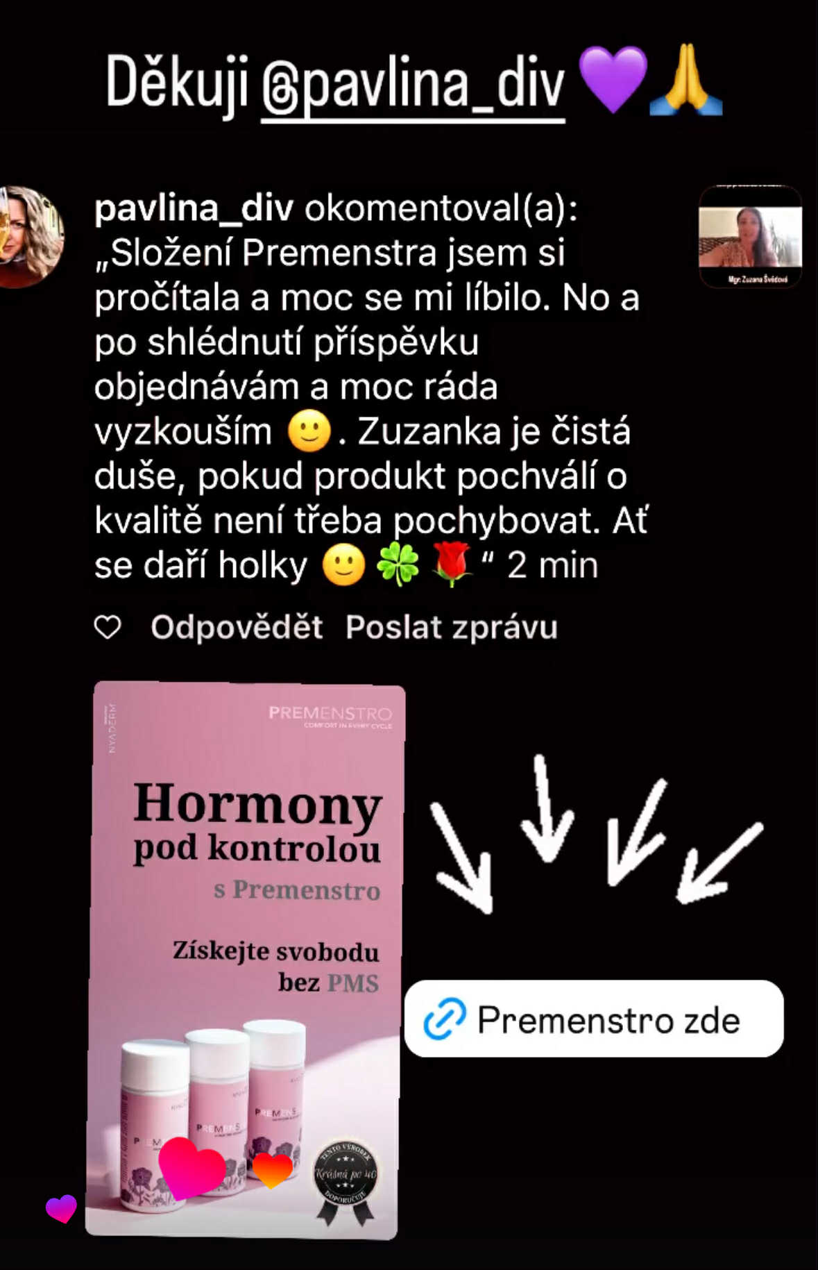 Na sociálních sítích i v recenzích se opakuje jedno: Premenstro pomáhá!!! Ženy oceňují, že je přírodní, jemný a zároveň účinný.