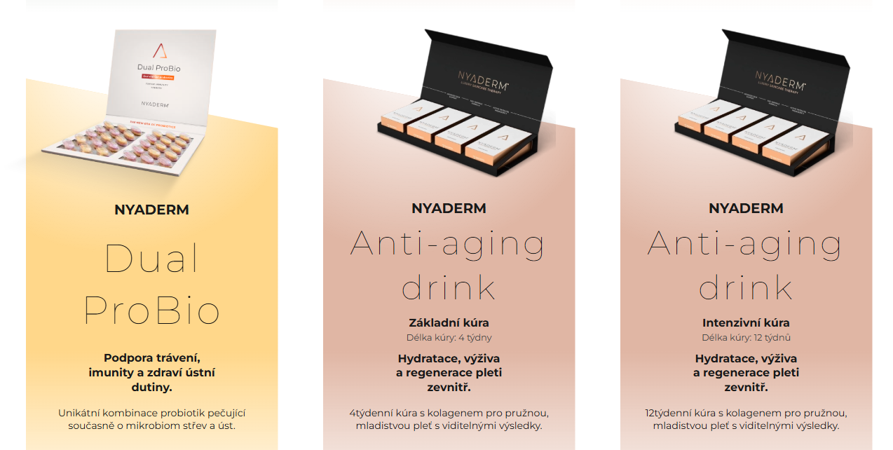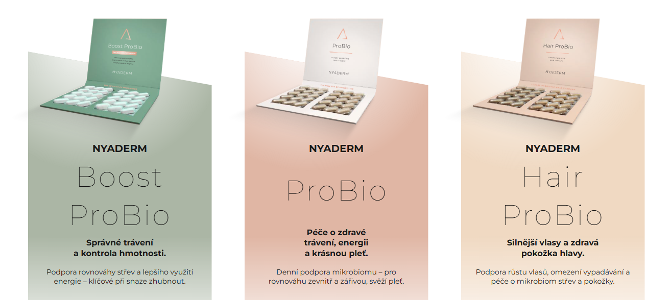Objevte svět inovací a péče o krásu s produkty Nyaderm – řadou určenou především pro ženy 35+, které hledají skutečně funkční cestu, jak se zbavit nejen vrásek, ale také podpořit zdravý střevní mikrobiom. S produkty značky Nyaderm získáte omlazenou pleť, celkovou harmonii a vitalitu, která vychází zevnitř.